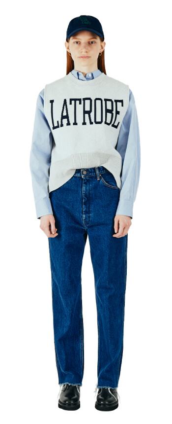 「TOKYO FASHION AWARD 2023」を受賞したばかりの〈TANAKA〉は時代や性別にとらわれず、人々の愛用品となる一着を提案するブランド。ニューヨークを拠点に活動し、日本では22年春夏から逆輸入的に展開を始めました。こちらの“THE SKATE JEAN TROUSERS”は、スケーターが穿くようなゆるめのボトムスをベースにし、裾を絞ったゆるめのテーパードシルエットに。リジッドのきれいな印象にシルエットで個性を光らせて。