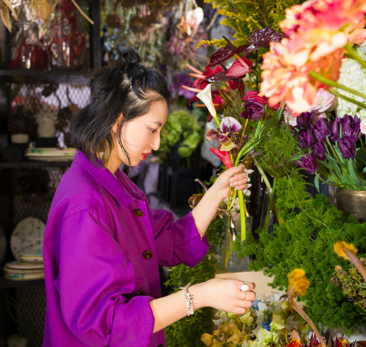 「服飾の短期大学に通っていた頃、色の勉強の一環として花屋でアルバイトを始めました。同じ品種なのに、まったく違う形や色があること、その組み合わせ方が無限に広がる感覚に衝撃を受けました。お花の面白さや表情の豊かさに気付いてからは、一気にのめり込んでいきましたね」