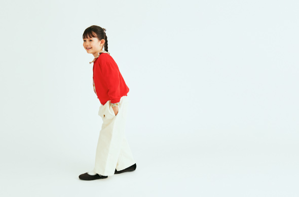 キッズが喜ぶ顔がみたいあまりに、花柄いっぱいのお洋服をつい選びがちですが、こうしたちょっとしたおしゃれこそ、親のセンスの見せどころ。リバティのクラシックなムードは、ピアノの発表会など、特別な1日に着せてあげても。