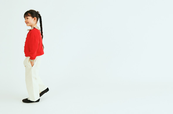 キッズにとってニットは、よそ行きのおしゃれアイテムです。着心地のよい素材とかたくさん今はありますが、やっぱりチクチクが苦手だったりするもの。でも、カーディガンだったら普段のカットソーやシャツに合わせるだけで、着こなしがきちんとします。
