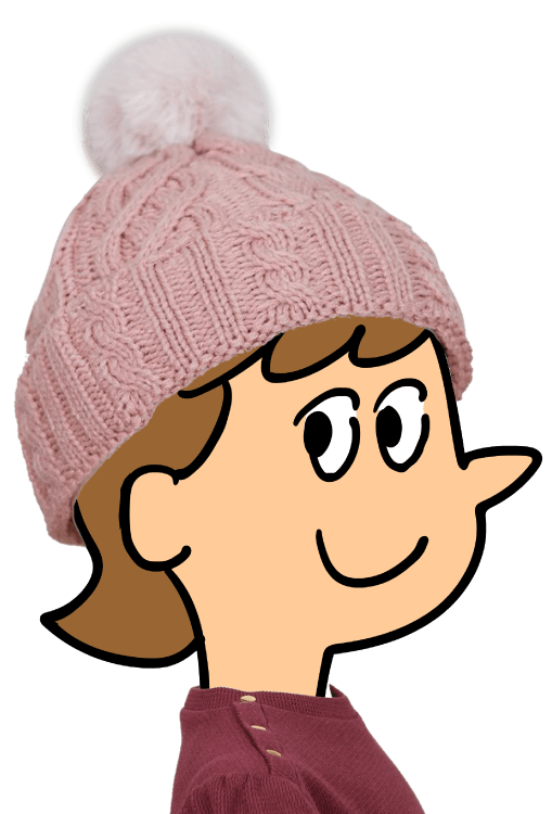 このニットキャップが普通に見えるのにとてもかわいいには3つのポイントがあって。一つは頭の上のボンボン。もう一つはクラシックなケーブルの編み地。そして大人のトレンドでもあるスモーキーピンク!