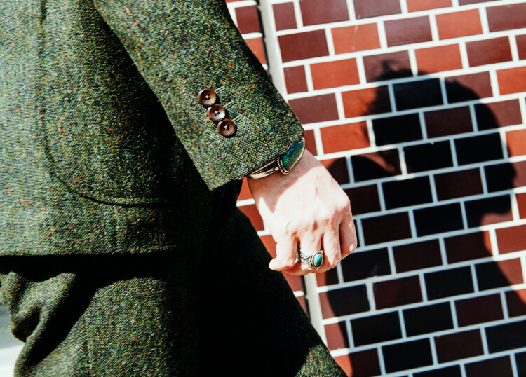 一見、正統派トラッドな彼の装いに秘められた