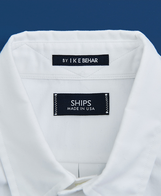 そのひとつが、オックスフォードのボタンダウンシャツです。生産は、1982年に設立された NY の〈アイク ベーハー〉に依頼。かつてポロ ラルフ ローレンの OEM を請け負っていたことでも広く知られ、オーダーメイドのような優れた品質から、アパレル関係者や目の肥えたトラッド愛好家からも高く評価される米国屈指のシャツ専業メーカーです。なかでもブルックス ブラザーズの高級ラインを手掛けるノースカロライナの名門、ガーランド工場まで何度となく足を運んで完成させた今回のシャツは、細部まで妥協のない一枚となっています。