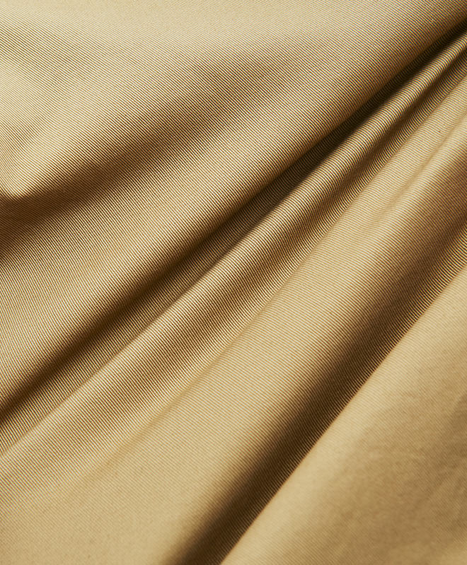 シルエットは、ヒップから太腿にかけて適度なゆとりを設けたパターンワークにより、体型を選ぶことなく安心。一方、膝下から裾へと緩やかに絞った流麗なテーパードカットが、美しく長いレッグラインを演出します。生地には、厚すぎず薄すぎずのミディアムオンスで織り上げた日本製のツイルを使用。年間を通して着用しやすく、しっかりとストレッチが効いているので、スッキリとした細身のフィットでありながら快適な穿き心地を味わえます。また縫製も、クオリティを重視したメイド イン ジャパン。職人の高い技術を必要とする 2mm 幅の両玉縁コインポケット&バックポケットをはじめ、ディテールまで抜かりのない丁寧で丈夫な作りとなっているため、気兼ねなくヘビーユースでき、末永く愛用することができます。さらに今シーズンは新たに、抗菌加工がプラスされました。