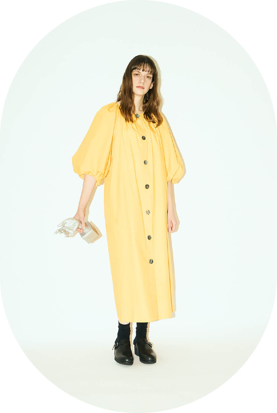 タックを入れて丸いシルエットに仕上げたショルダーバッグ。口が大きく開くので荷物を出し入れしやすく、しっかりと底があるので自立して型崩れしにくいのが特徴。見た目のかわいさと実用性を兼ね備えたアイテムです。