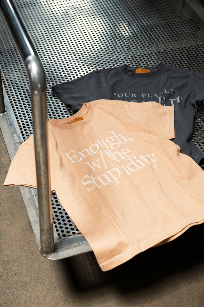 伊藤 : 染めとプリントは相性が大切で、同時にやってこそいいものが生まれると思っています。新品っぽいボディにヴィンテージプリントを載せても違和感が出てしまうんですよね。味があるボディにいいプリントを載せてこそ輝くので、田代さんと一緒に考えながら作っているんです。圧倒的な信頼があるので。