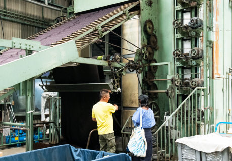田代 : 茶色やカーキ系ですね。ちょっとブレるとチャコールになったり、本当に調整が難しい。うまく茶色を出したい、という願いを込めて、染色工場には「茶」の字がつくところが多いんですよ。