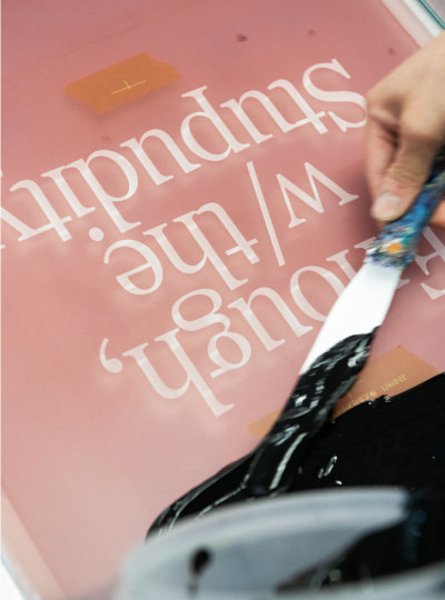 松本 : そうですね。何グラムです! と言えないので経験値になってしまうんですが。インクを載せたらスクイージーで刷り上げ、刷り下ろします。最初は力を入れず、下ろすときにしっかり力を入れて。