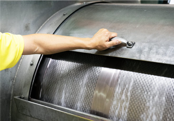 田代 : そう言ってくれるんですが、まだ自分の中でケミカル加工は完全なものではなくて。温度管理とワッシャーの回転数、薬品の管理と投入のタイミング、そのすべてが一致しないと同じ色ってつくれないんです。同じ色にならないと商品としてはB品になりますからね。