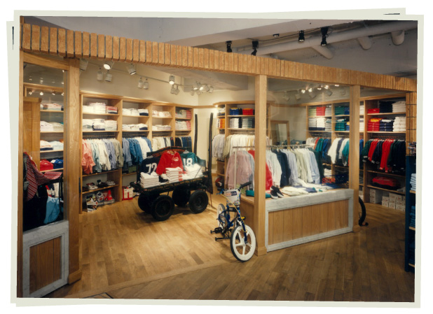 そして数年が経った頃、働いていたスタッフの奥さんや彼女が着るような、いわゆる女性のトラッドウェアが一般になかった。だったら自分たちで作ろう、と始めたのが1979年、ウィメンズレーベルの始まりです。そして10年後、「自分たちが着ている服を子供にも着せたい」という想いから、1989年にシップス キッズを作りました。渋谷の道玄坂にあったミウラ&サンズの跡地に作った「スタジアム」という店舗内の小さなコーナー展開からスタートしました。