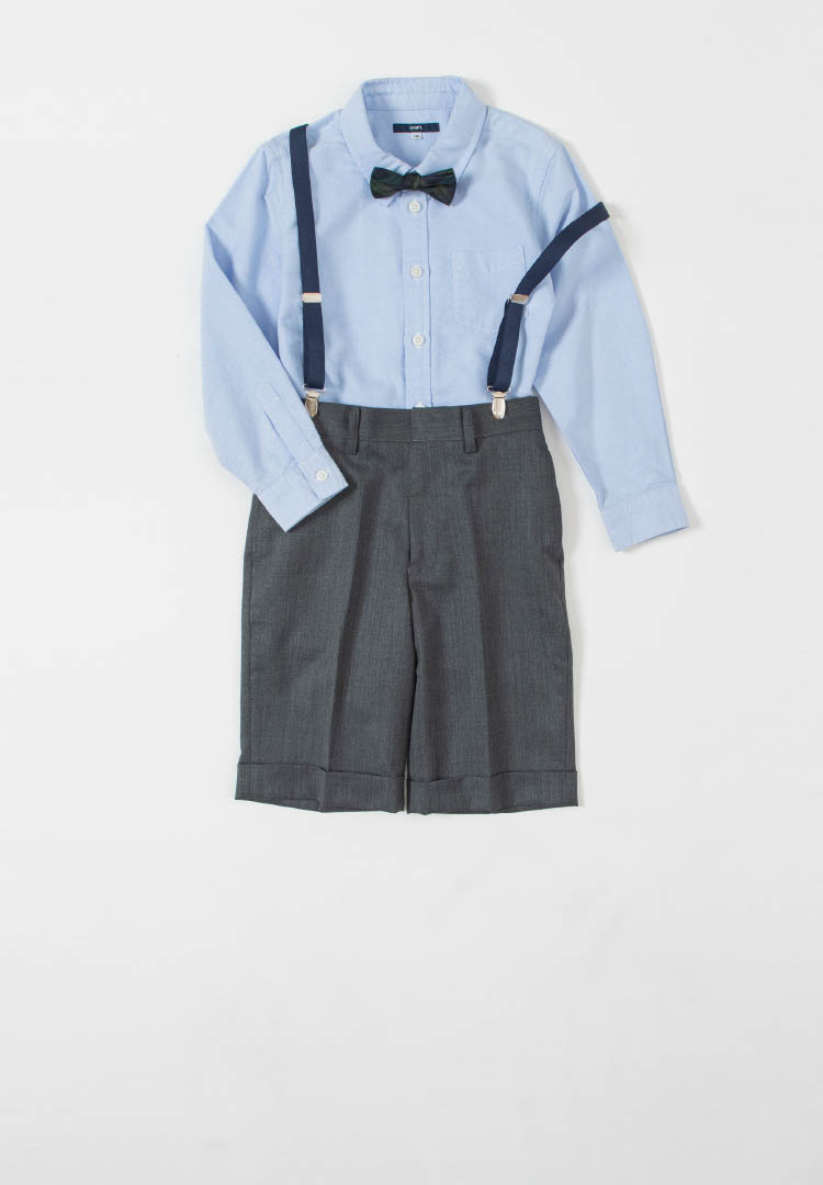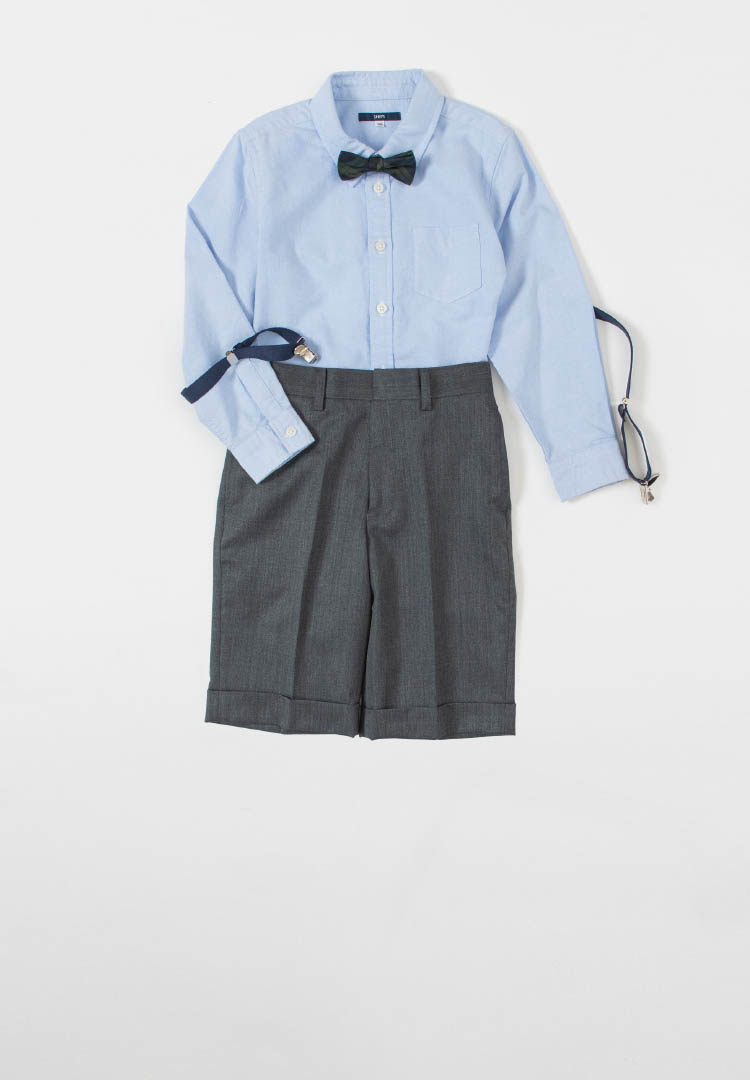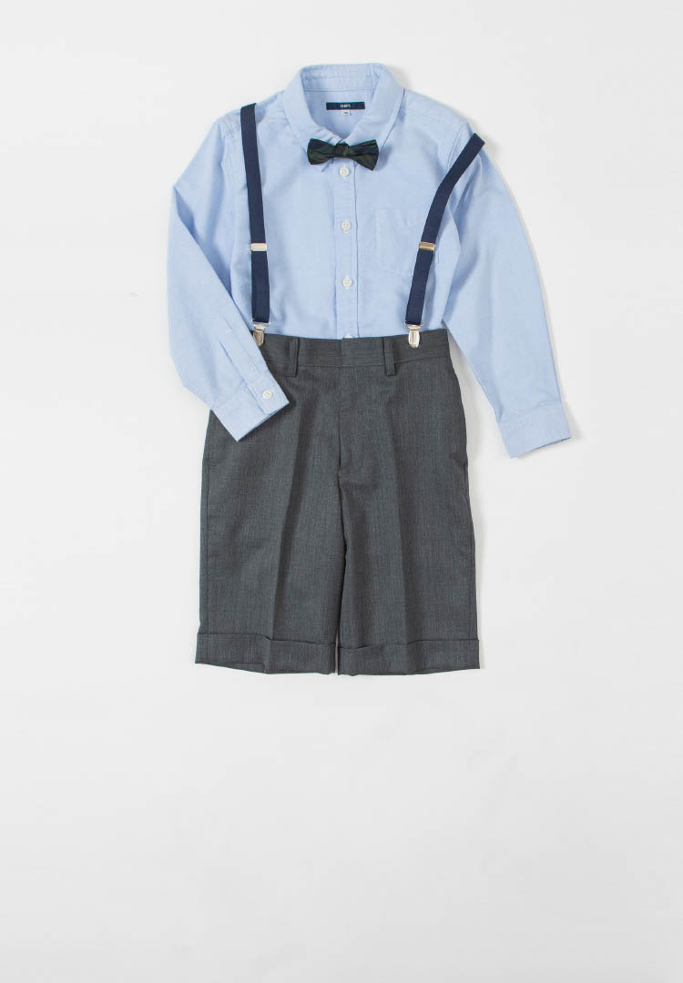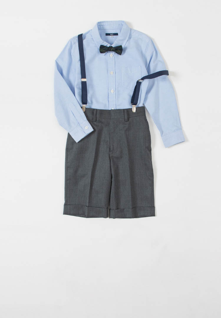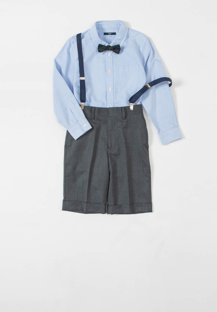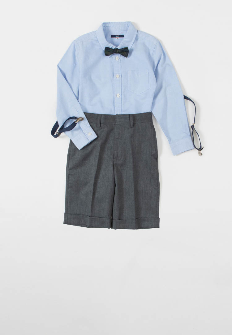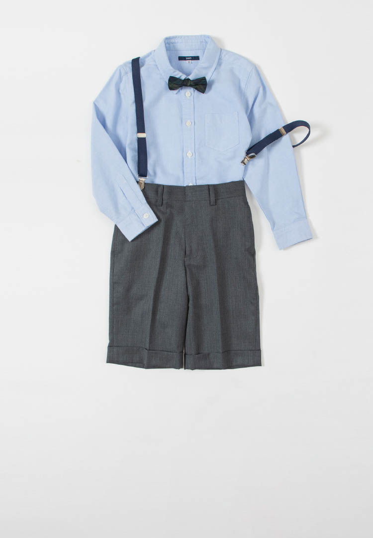 周りを見わたせば、ネクタイ姿の大人たち。そんな結婚式の日には、キッズもタイドアップでおしゃれしよう。蝶ネクタイとサスペンダーは、男の子のためのおしゃれアクセサリー。英国調のブラックウォッチ柄で、トラッドにきめてみよう。