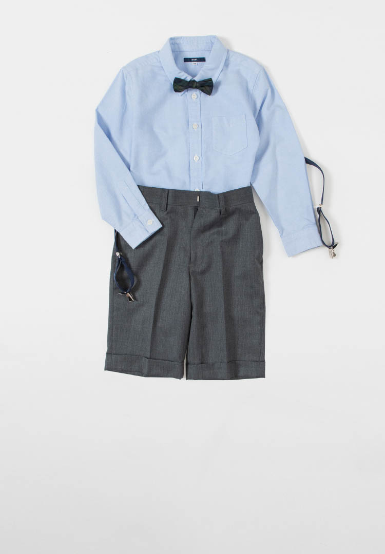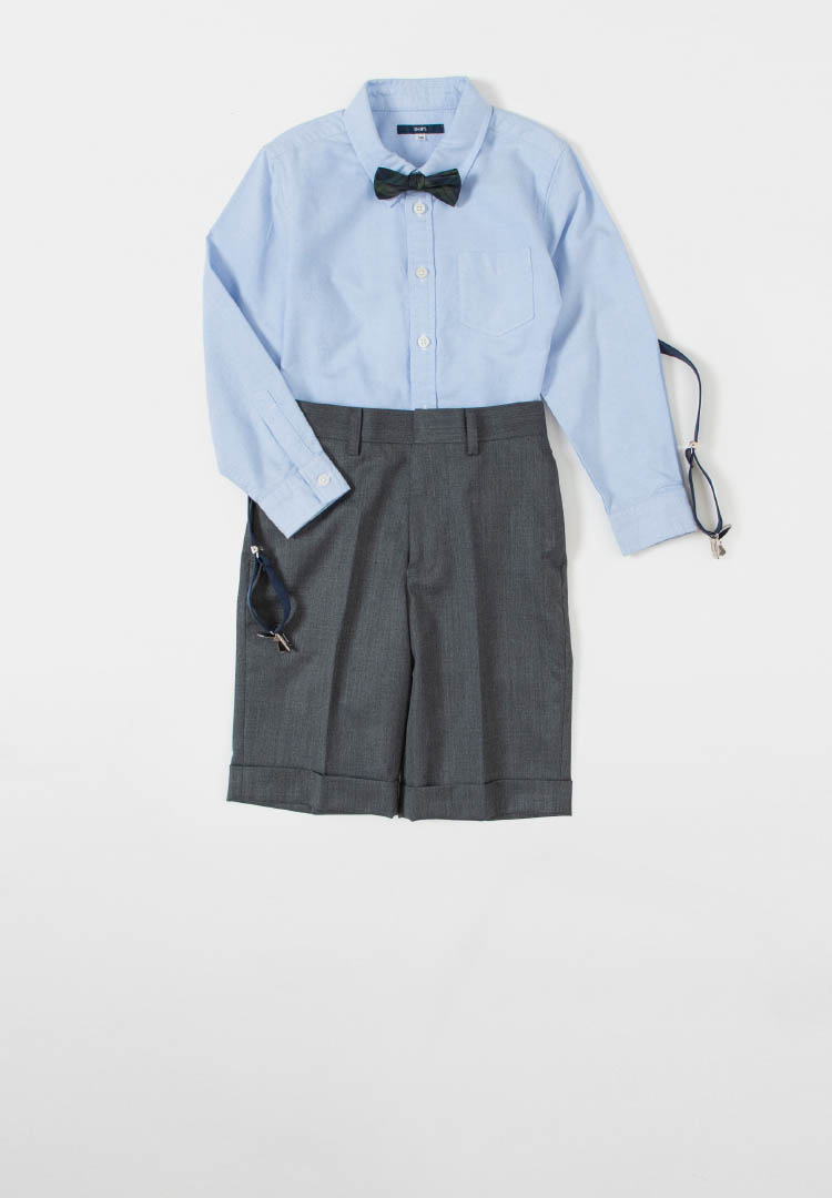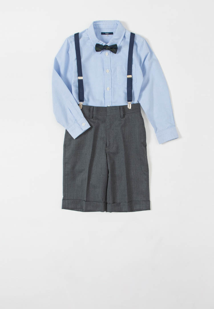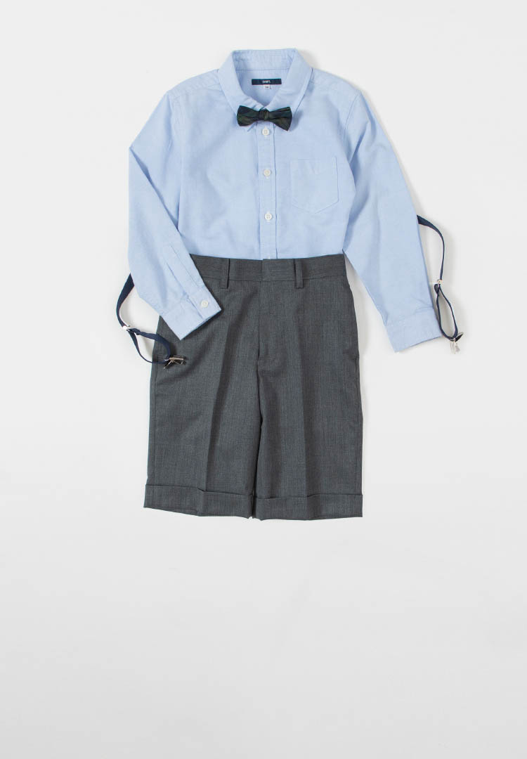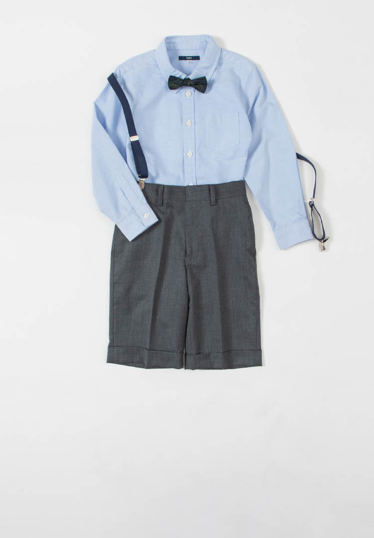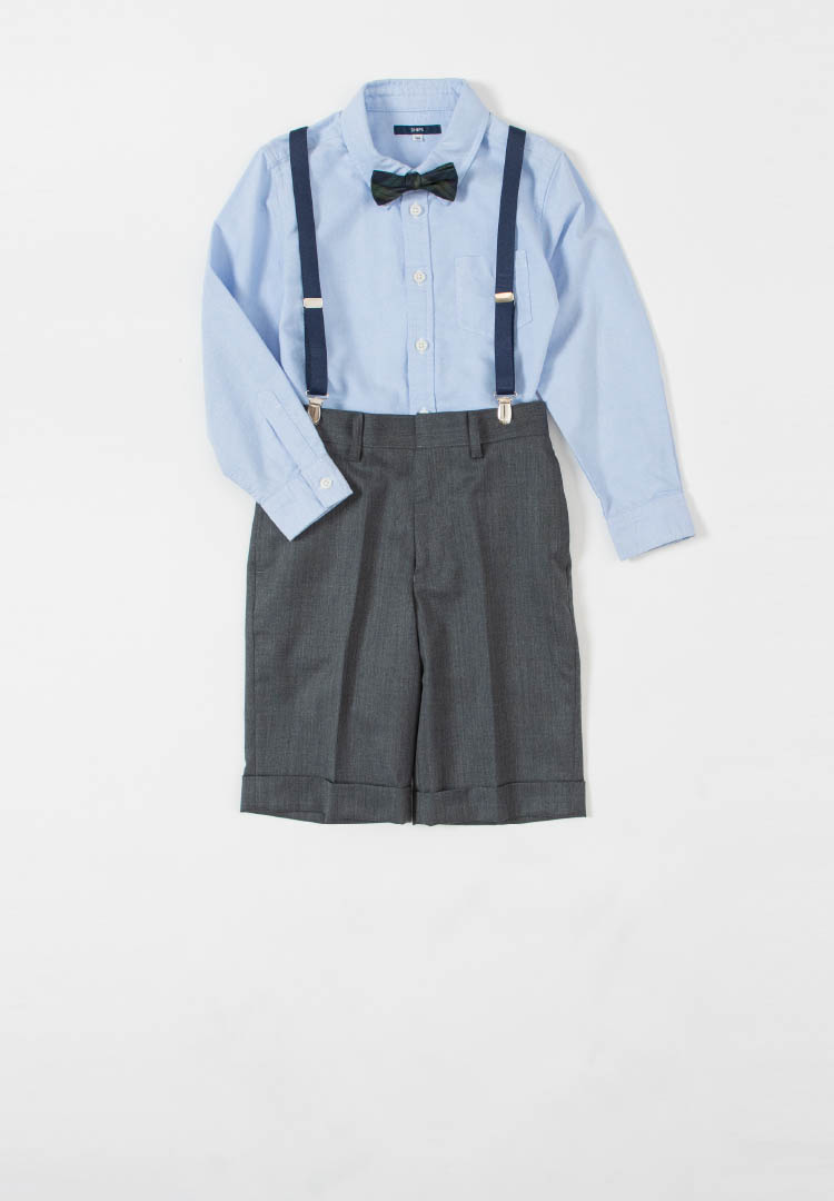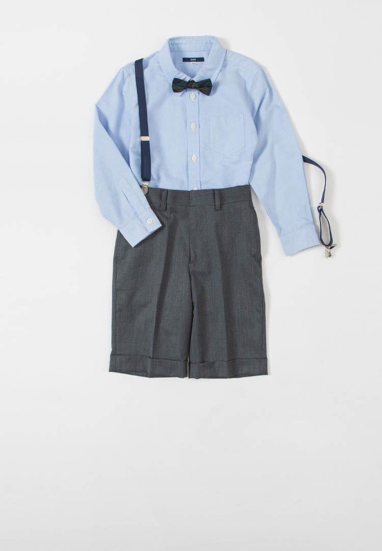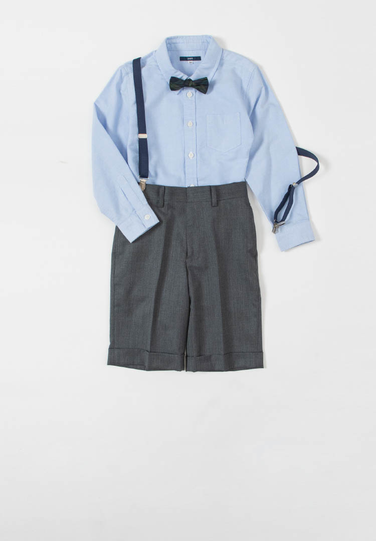 周りを見わたせば、ネクタイ姿の大人たち。そんな結婚式の日には、キッズもタイドアップでおしゃれしよう。蝶ネクタイとサスペンダーは、男の子のためのおしゃれアクセサリー。英国調のブラックウォッチ柄で、トラッドにきめてみよう。