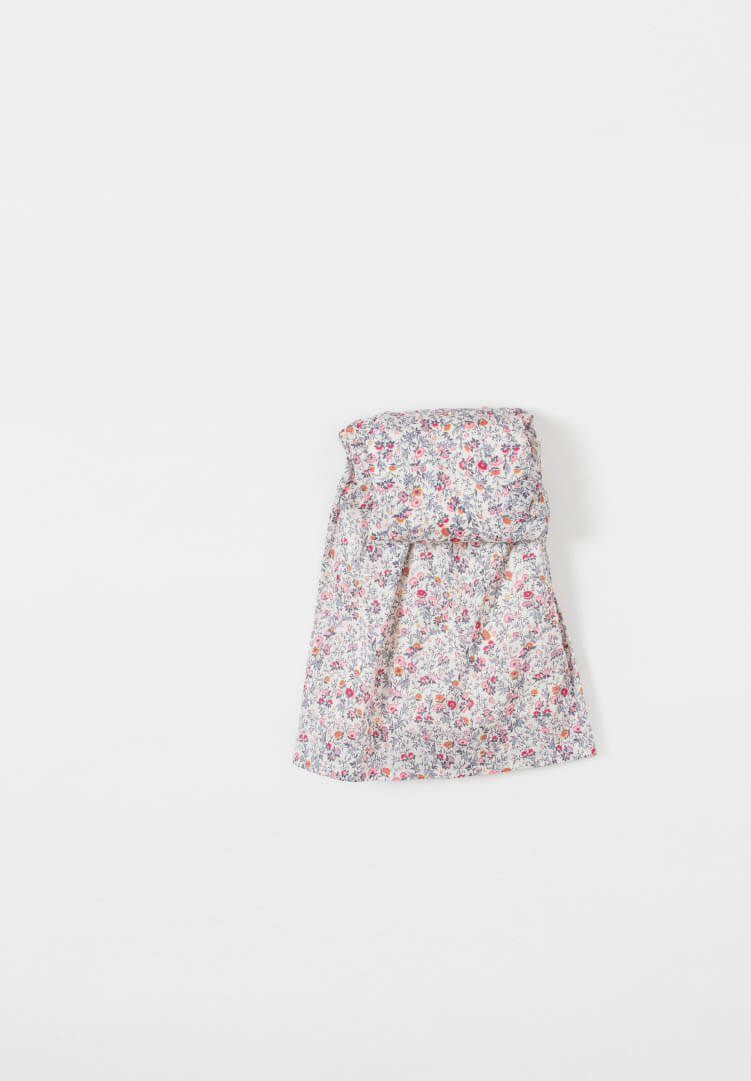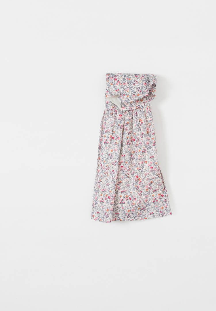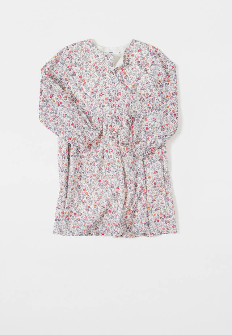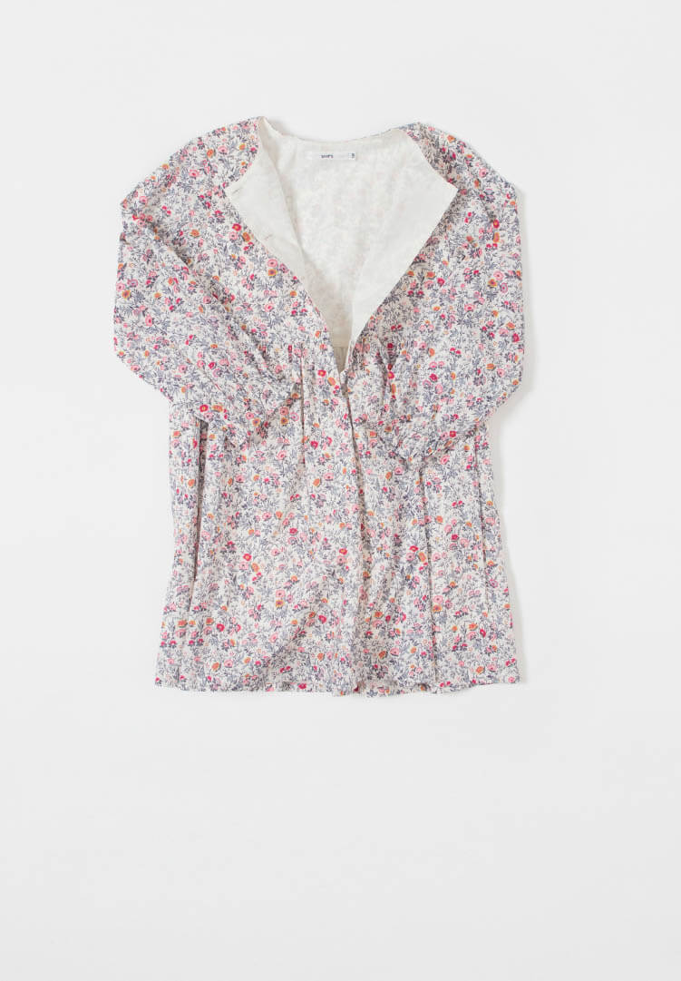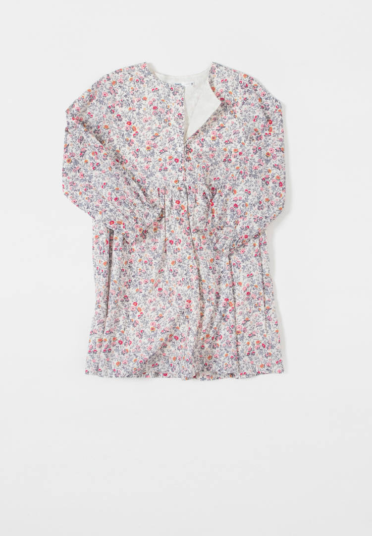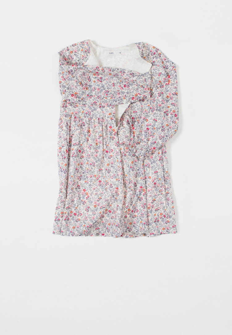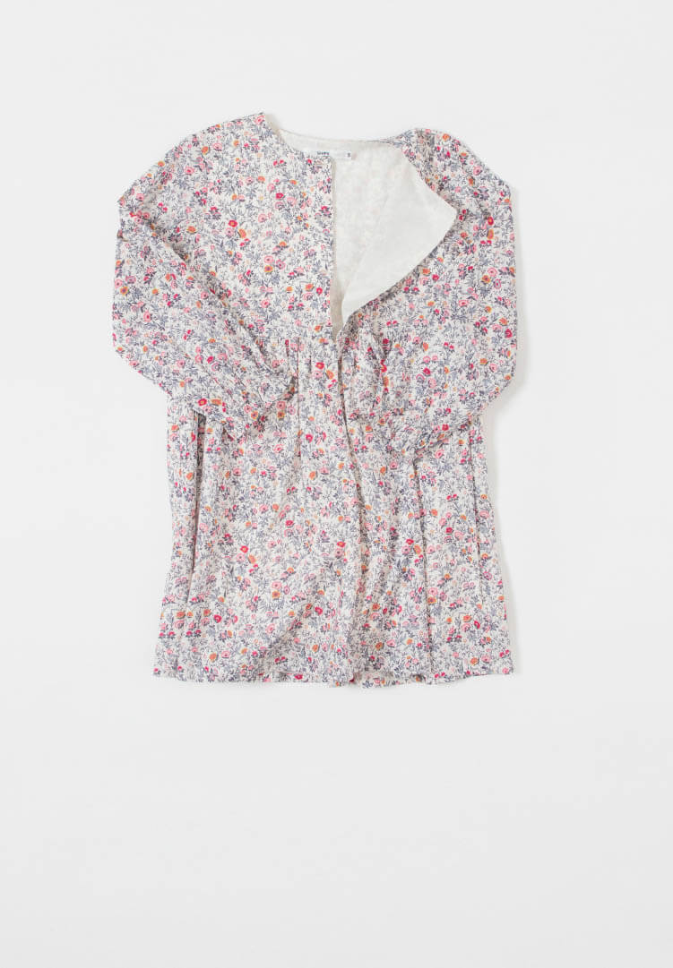 兄弟の七五三を一緒にお祝いするなら、リバティプリントのワンピースでおめかし。ウエストのギャザーが女の子らしいシルエットを作ってくれる。カーディガンとエナメルのバレエシューズはネイビー。SHIPS KIDSらしい、甘くトラッドなよそおいに。