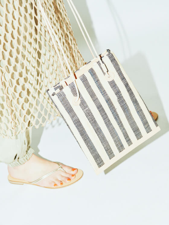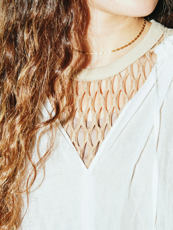 はつらつとした印象と健康的な肌、ナチュラルなウェーブのロングヘアで、一度会ったら忘れない雰囲気を持つ榎本。エスニックアイテムや肌見せなど、自身の好きなスタイルを〈シップス〉らしく上品にアレンジするのが得意。