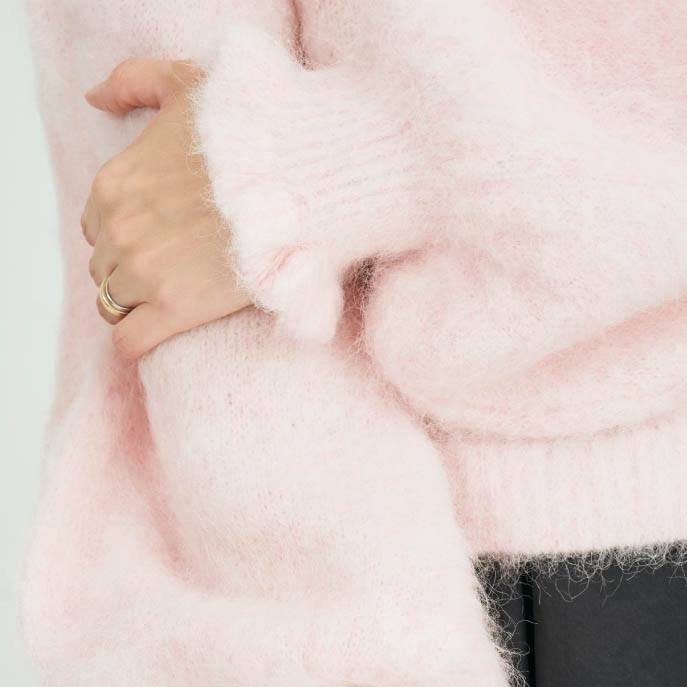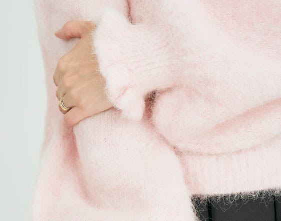 モヘアの透け感がふわりと抜けをつくる