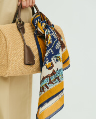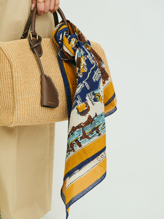 地図柄スカーフ×ビッグボストンで、抜け感を