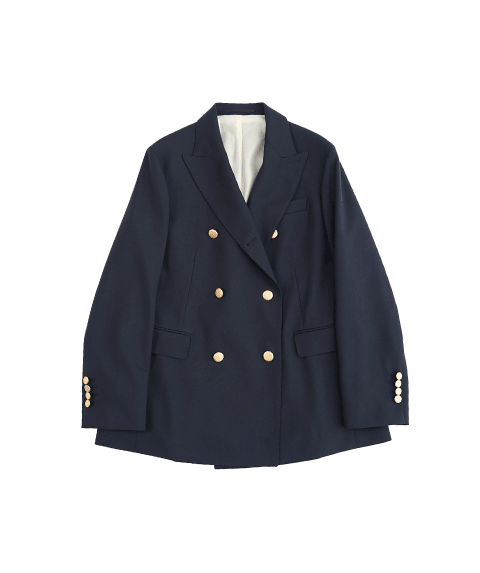 肩パッドなしですっきりとした軽い着心地ですが、肩線の設計などで仕立てのよさを感じます。ウエストが程よくシェイプされているので、オンオフどちらにもおすすめ。