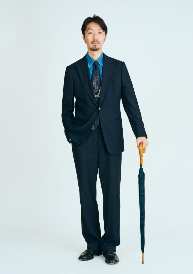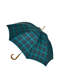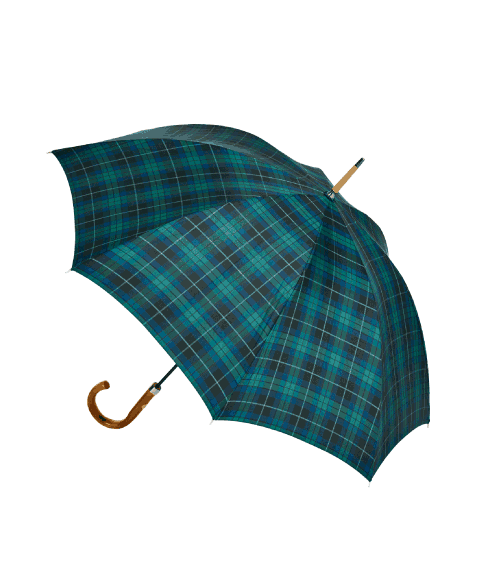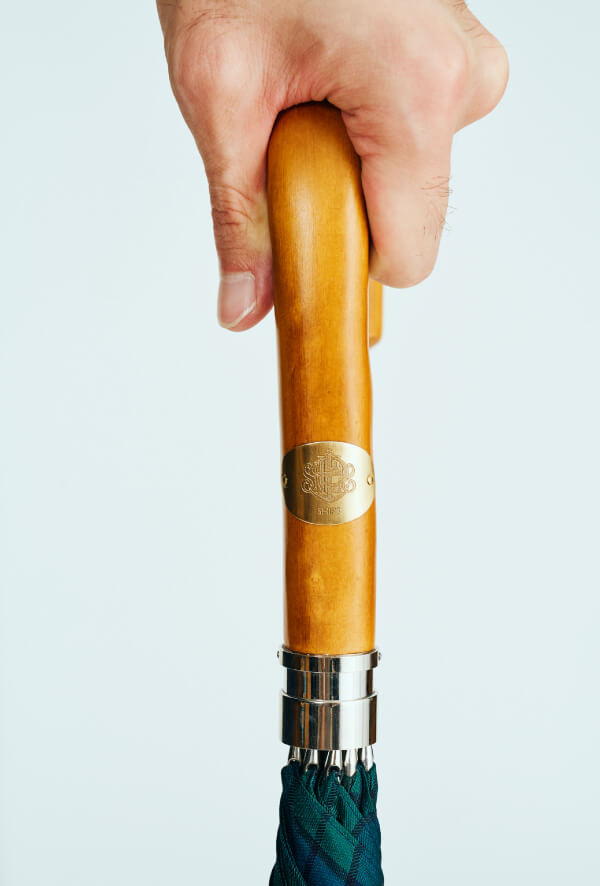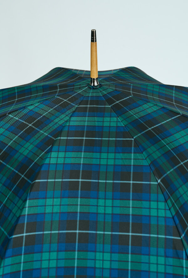傘の生地に落とし込んだのは、SHIPSの50周年を機に、オリジナルで制作したチェック。スコットランド・タータン登記所に登録された、正真正銘のハウスタータンです。SHIPSとゆかりの深いグリーンとブルー、そしてネイビーを組み合わせています。