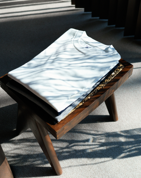 「これまでの〈サウスウィック〉の品揃えはスーツやジャケットに、シャツ、パンツ、タイが加わる程度でしたが、新たな試みとしてブレザーを中心としたウェアリングも提案します。ブレザーは汎用性がとても高く、合わせ方によってドレッシーな装いからカジュアルスタイルまで広い振り幅をもっている。そうした魅力を伝え、もっとコーディネートを楽しめるよう、従来にはなかった商品にもラインナップを拡げます。とはいえ何でもありではなく、〈サウスウィック〉が手掛ける必然性や“らしさ”は大切にしたい。今季であればポロシャツを用意していますが、これも以前になかった。ただしハイグレードを徹底するブランドらしく、素材には高級綿のギザコットンを。シルエットもアメリカらしい背中が長いドロップテールに。左胸のエンブレム刺繍は同色で控えめに飾って上品にまとめました。ほかにも、同じくギザコットンを使った無地のTシャツ、さりげなく刺繍をあしらったキャップも登場します」