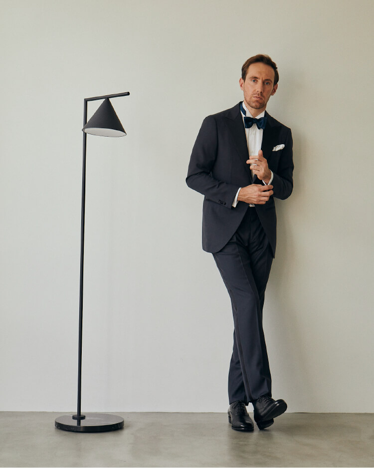 パーティや結婚式など、特別な日にフォーマルウェアを自然と装える大人を目指したいもの。ドーメル社の生地「バラシア325」は現代に求められる機能を持ち合わせた高級ウール。固く見えがちなタキシードも、柔らかく通気性があり、シワの復元性に優れています。側章のラインが施された組下もドレッシーです。