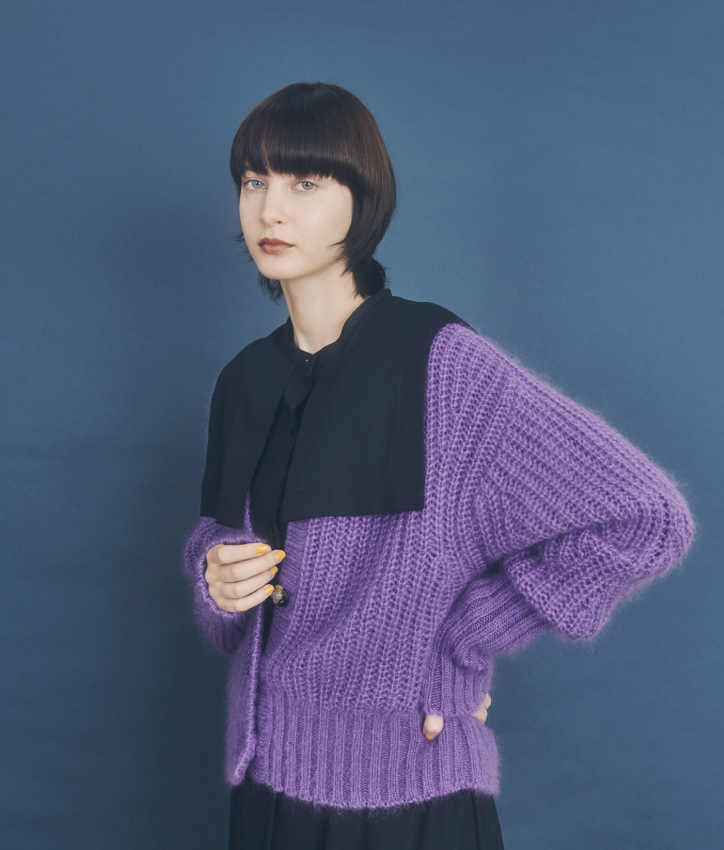 大振りのフリル襟は、バックがセーラータイプになっていてインパクト抜群。深く開いたVネックで甘くなりすぎないうえに、光沢のある上品な素材感が大人っぽく着られます。