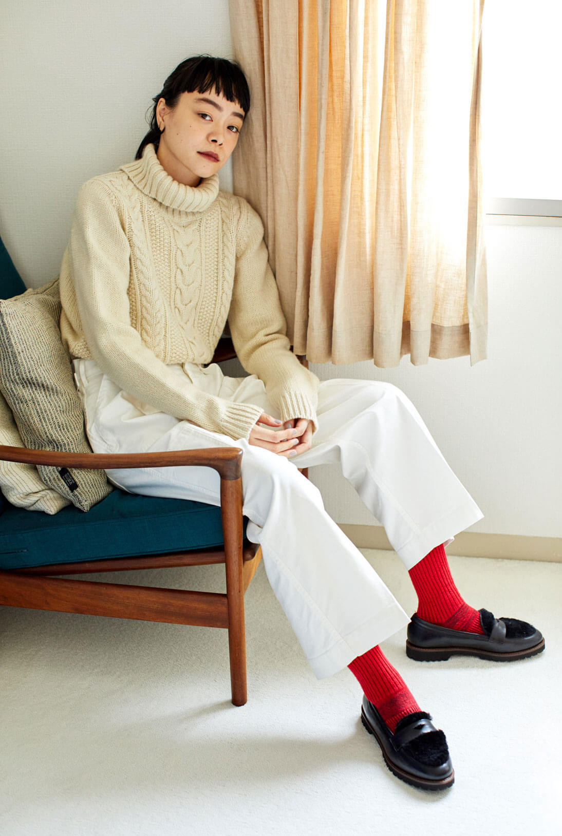 「白のセーターは持っていますけど、柄のものは着ていないですね。買い物はお店に行くのはけっこう緊張しちゃうので、ネットショッピングを利用することが多いです。古着屋さんにはフラッと立ち寄れるのに、なんででしょう(笑)? 最近気になっているアイテムは、パールのアクセサリー。そろそろ、ちゃんとした物を身につけたいなって思っています」