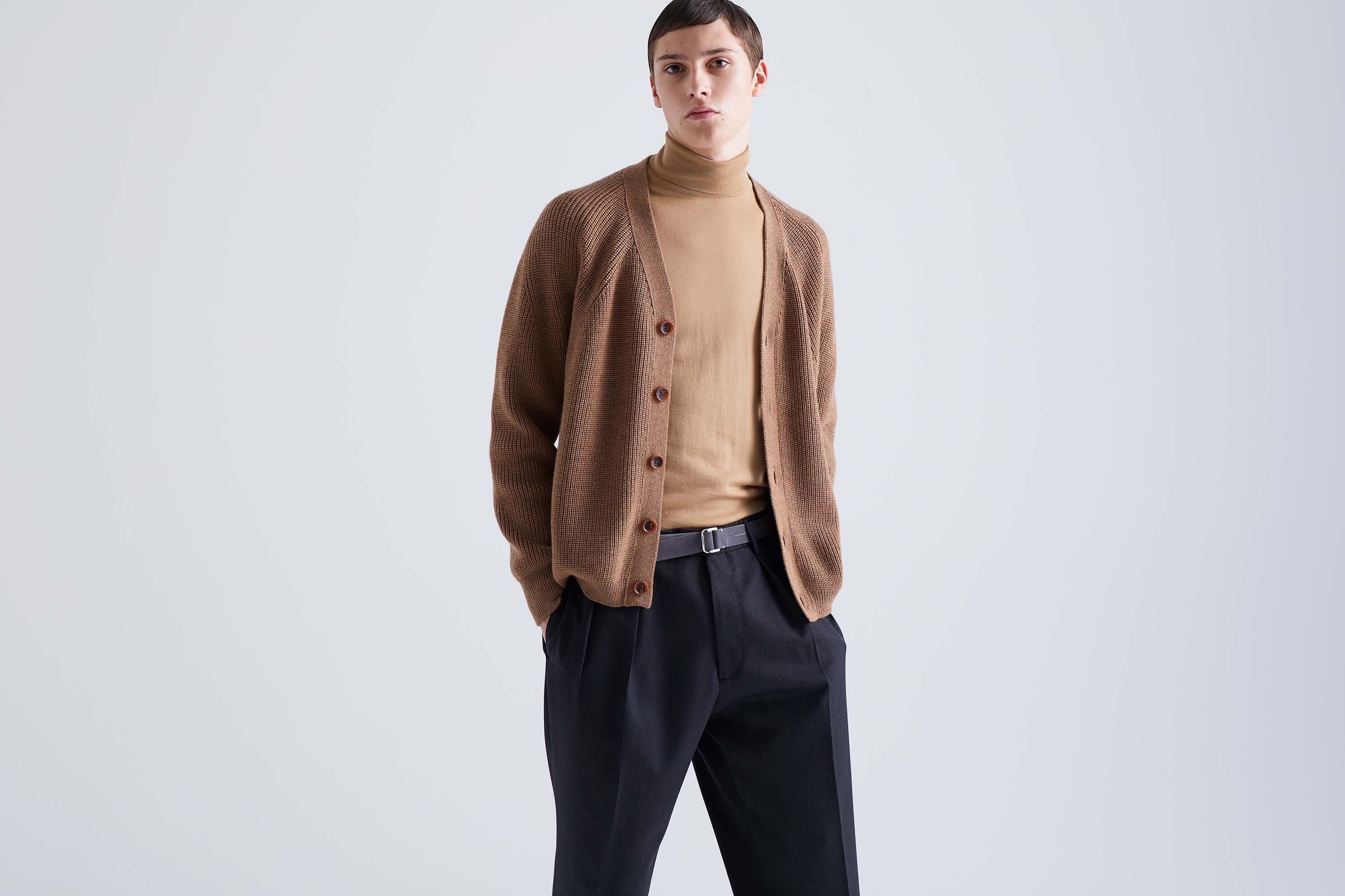 駅から徒歩10分の路地裏に、古民家を改造したワインバーがオープン。オーナーは、昔からセンスが良かった幼馴染ということで、期待感もMAX。どんな服装で行くべきか迷ったけど、同系色のニット on ニットで秋らしくしてみた。素材にこだわったお店と聞いているから、上質なニットを取り入れたのが、僕なりの隠れたメッセージ。ボトムはストレートに近いワイドパンツで全体的にゆったりと。行きしなに花束でも買っていこうかな。