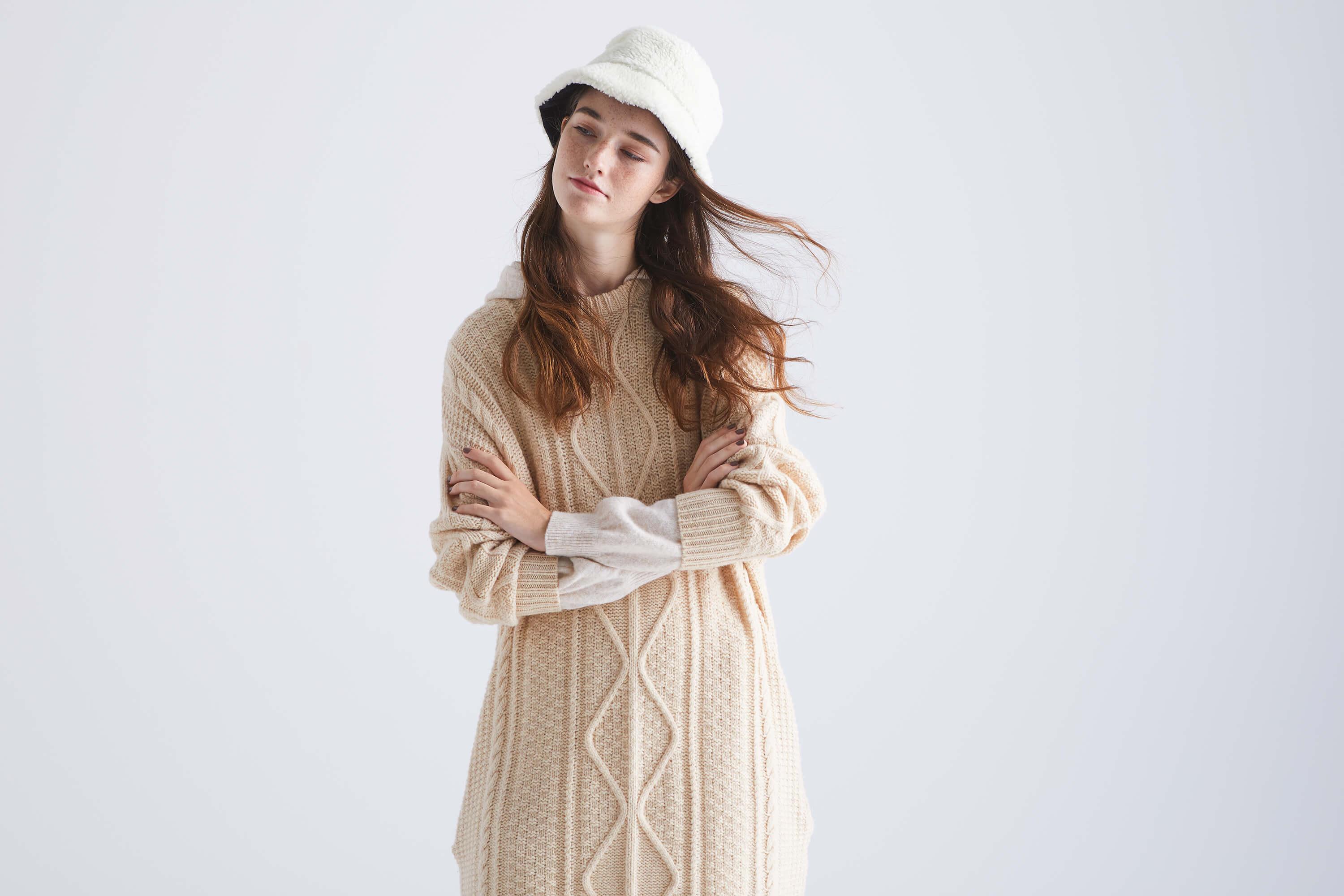 ニットフーディードレス¥14,500 (+tax) / Khaju