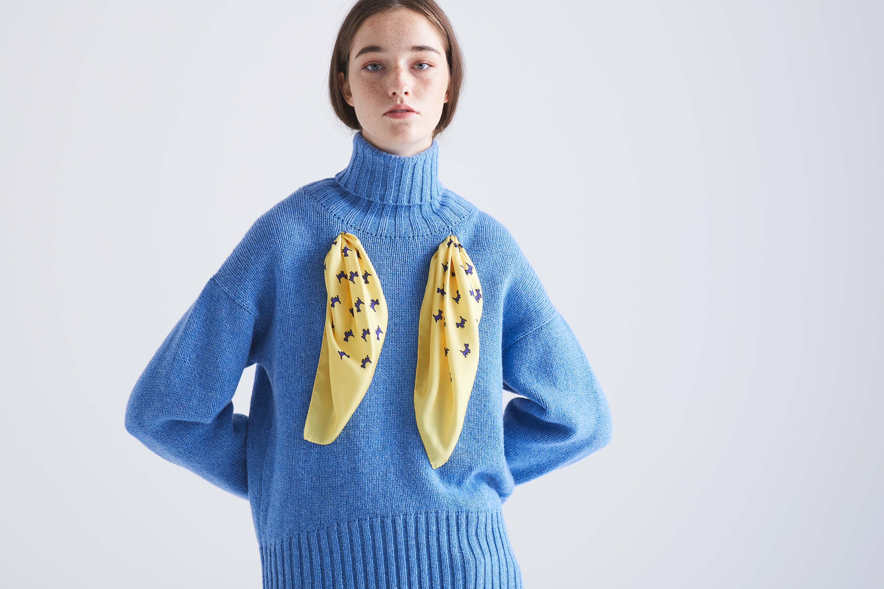 今年はどんなニットを買おうかと考えていたところ、スカーフ付きのなんとも遊び心があるものを発見。歩くたびにふわりと揺れるスカーフは、街ゆく人の視線を集めて、女性らしさも引き立ててくれるみたい。ニットとチェックのスカートってこの時期の定番だけど、これならちょっとした意外性も楽しめる。そんな意外性を強調するために、全体的をブルーのトーンで統一してみた。今日はこれから図書館でじっくり本を読む予定。