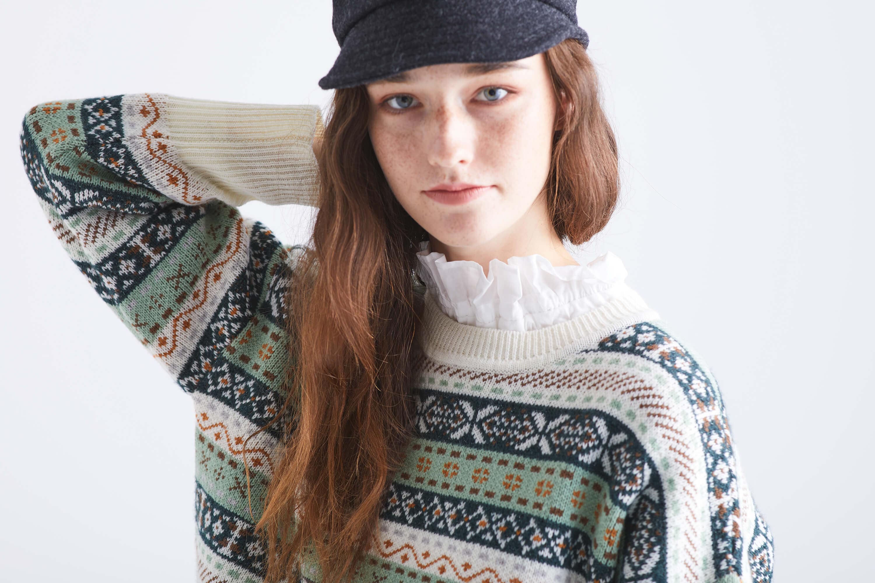 腐れ縁とも言うべき男友達をなんとなく意識するようになってしまったのは、先月の飲み会でのこと。今週の日曜も二人で会う約束をしたけれど、それまでその辺にあるデニムにニット、スニーカーなんて、適当な格好で会っていたものだから、いきなり女性らしくしていくわけにもいかない。そこでいつもの格好をベースに、フェアアイルのニットの下に忍ばせたフリル、ジャズシューズで変化をつけてみた。いつもとは違う私に気づいてくれるだろうか。