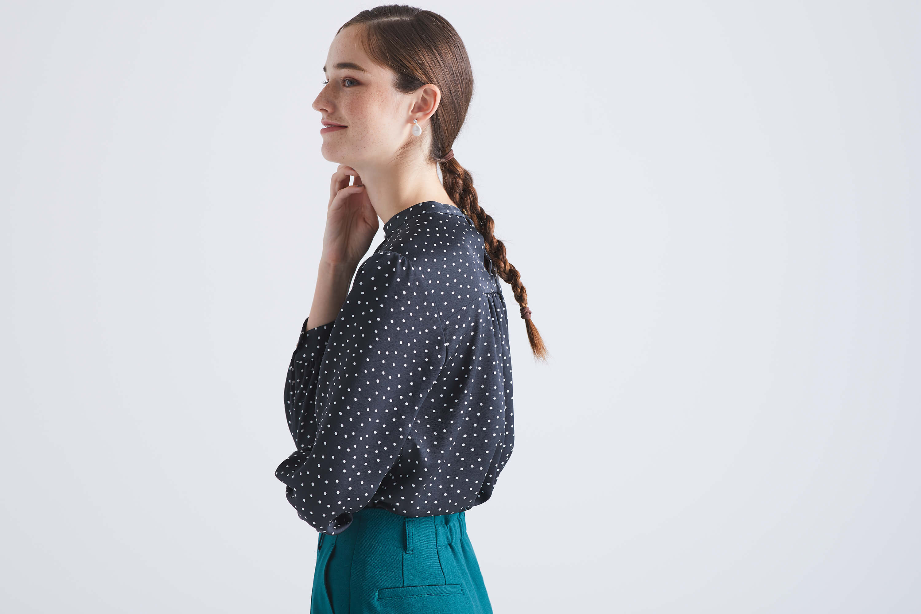 仕事終わりに女子会に参加する日は、トレンドを意識。こっくりと秋らしいムードを漂わせる深みグリーンのパンツには、ドット柄のブラウスで可愛らしさをプラスして。今年の秋冬に活躍しそうな、買ったばかりのファーのバッグを合わせたのもポイントだ。美味しいワインが飲めるお店に集まると、結局はくだらない話をしてあっという間に時間が過ぎてしまうけど、お洒落を意識させてくれる友人との集まりは、生活にスパイスを与えてくれる大事な時間。