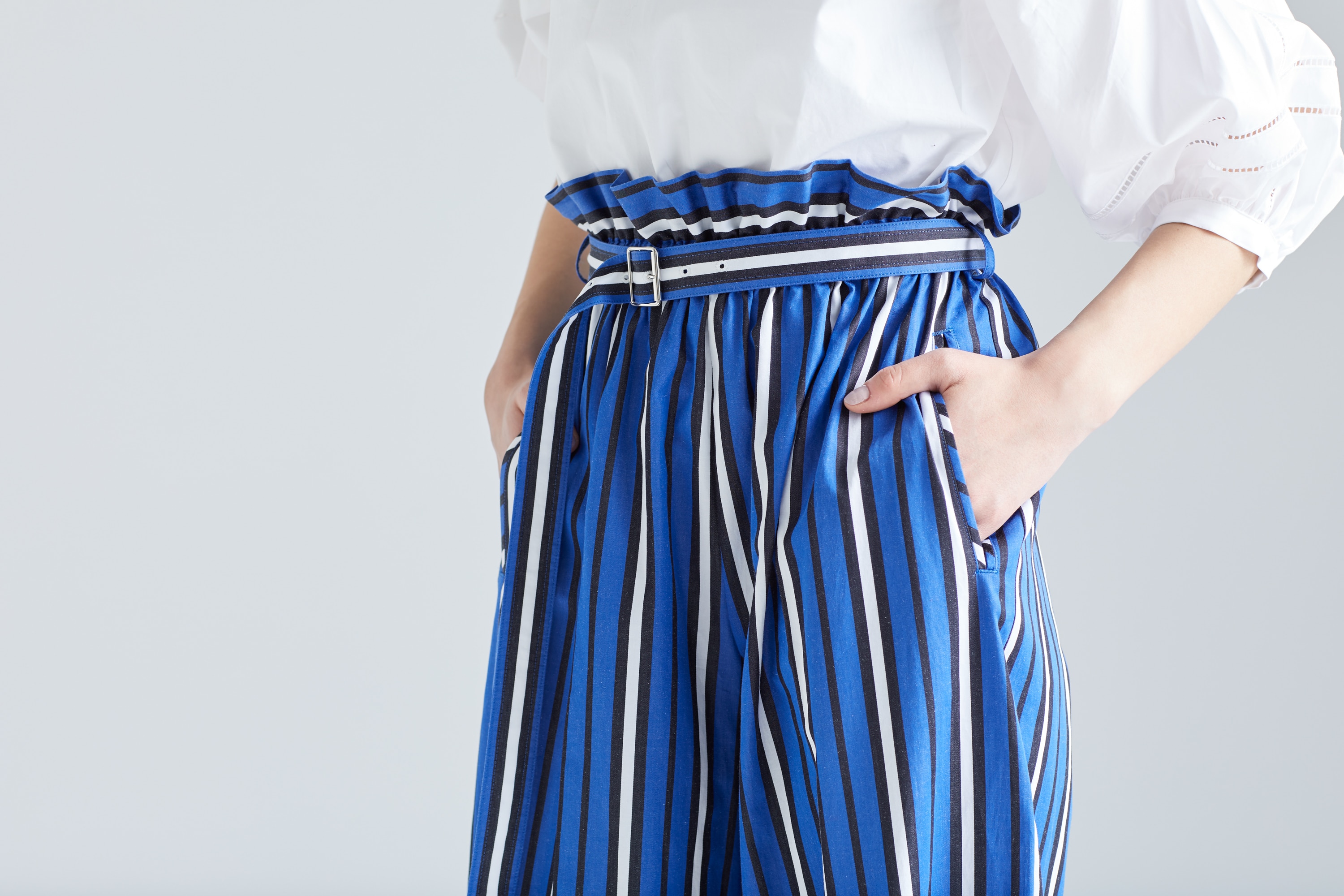 「スタイルが良いね」って最高の褒め言葉だと思う。ある日雑誌を読んでいたら、ストライプが脚長に見せると書いてあった。なるほど、洋服で視覚効果を狙うのか。そんなときに見つけた「CURRENTAGE」のパンツは、インパクトのあるストライプで遠目から見てもすらっとして見える。トップスには甘さのあるパフスリーブのブラウスで、女性らしさもプラスしたりして。早速SNSのファッション専用アカウントにテクニックをアップしよう。