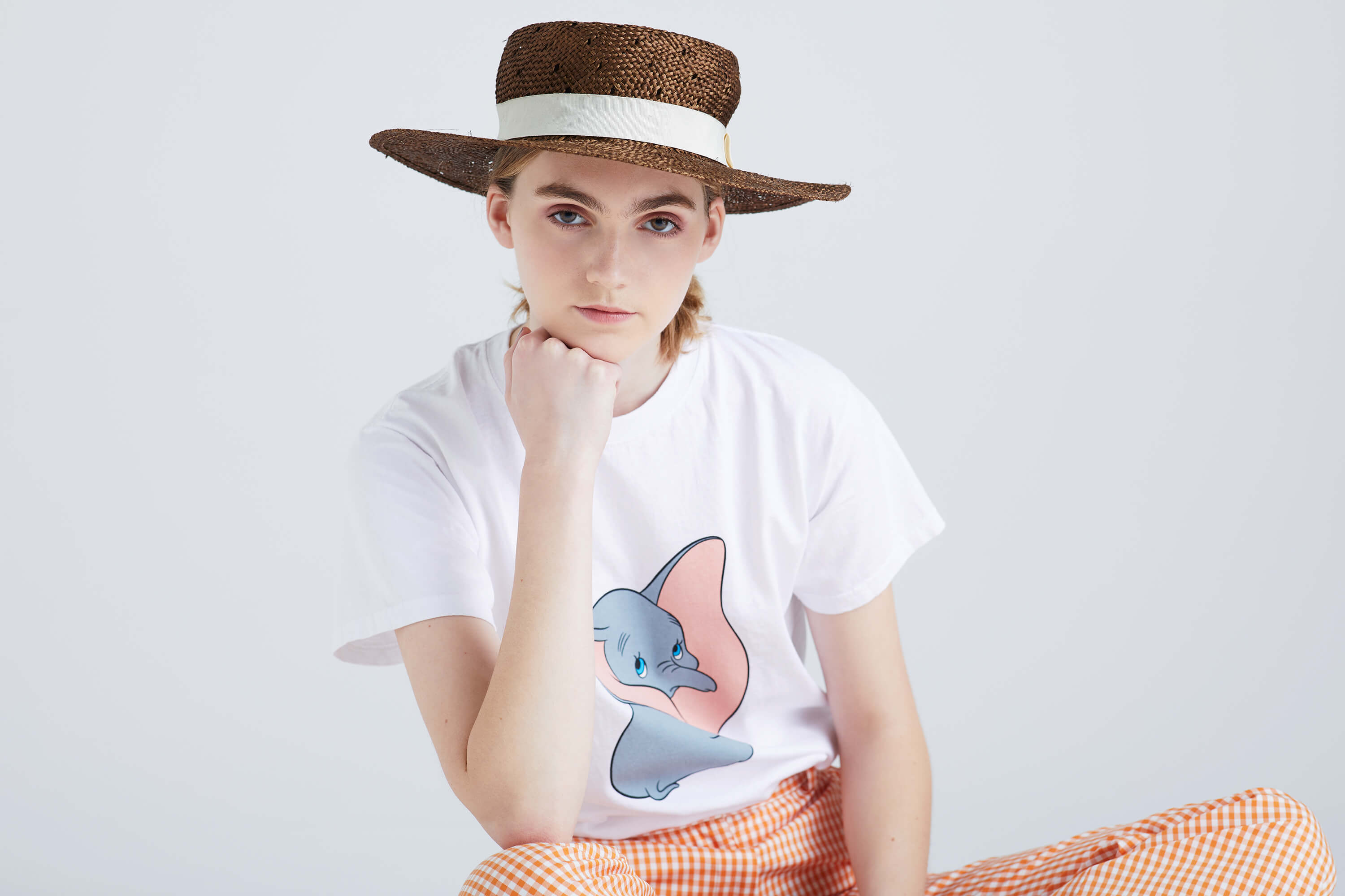 映画『ダンボ』を観た帰りに見つけたTシャツに運命を感じずにはいられなくて、即購入。キャラクターTシャツを今っぽく着こなすのもいいけれど、劇中のノスタルジックなアメリカの空気感に触発されたこともあり、ギンガムチェックのフレアパンツにインする着こなしが今のマイブーム。カンカン帽とビーズバッグがさらに拍車をかけて、なんともレトロなスタイルに。そんなわけで、まだ映画の余韻に浸ってる。