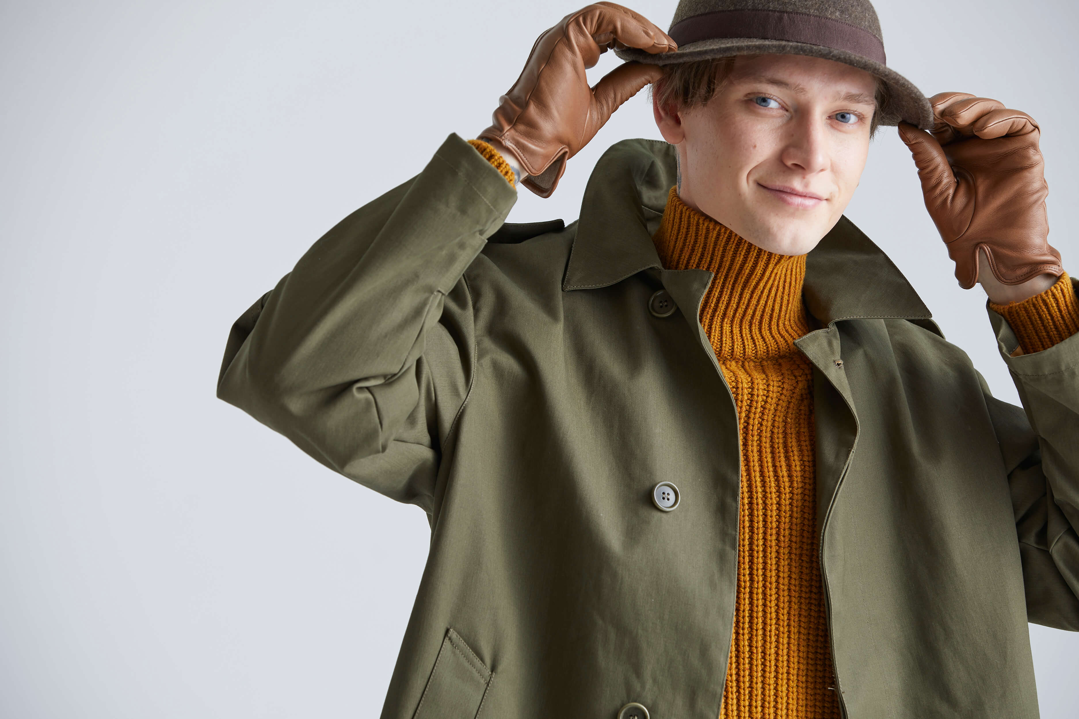ここ数年、スポーツMIXのようなラクチンスタイルだった反動で、今年はクラシカルな装いに回帰した。そんなときに見つけたのが、ロング丈のステンカラーコート。Aラインのいまどきなフォルムに加え、エポーレット付きでミリタリーテイストが感じられるのもいい。あとはトレンドカラーであるマスタードイエローのセーターに、太畝コーデュロイのワイドパンツを合わせてゆとりのあるシルエットを構築。こんな僕に彼女はびっくりするかも。