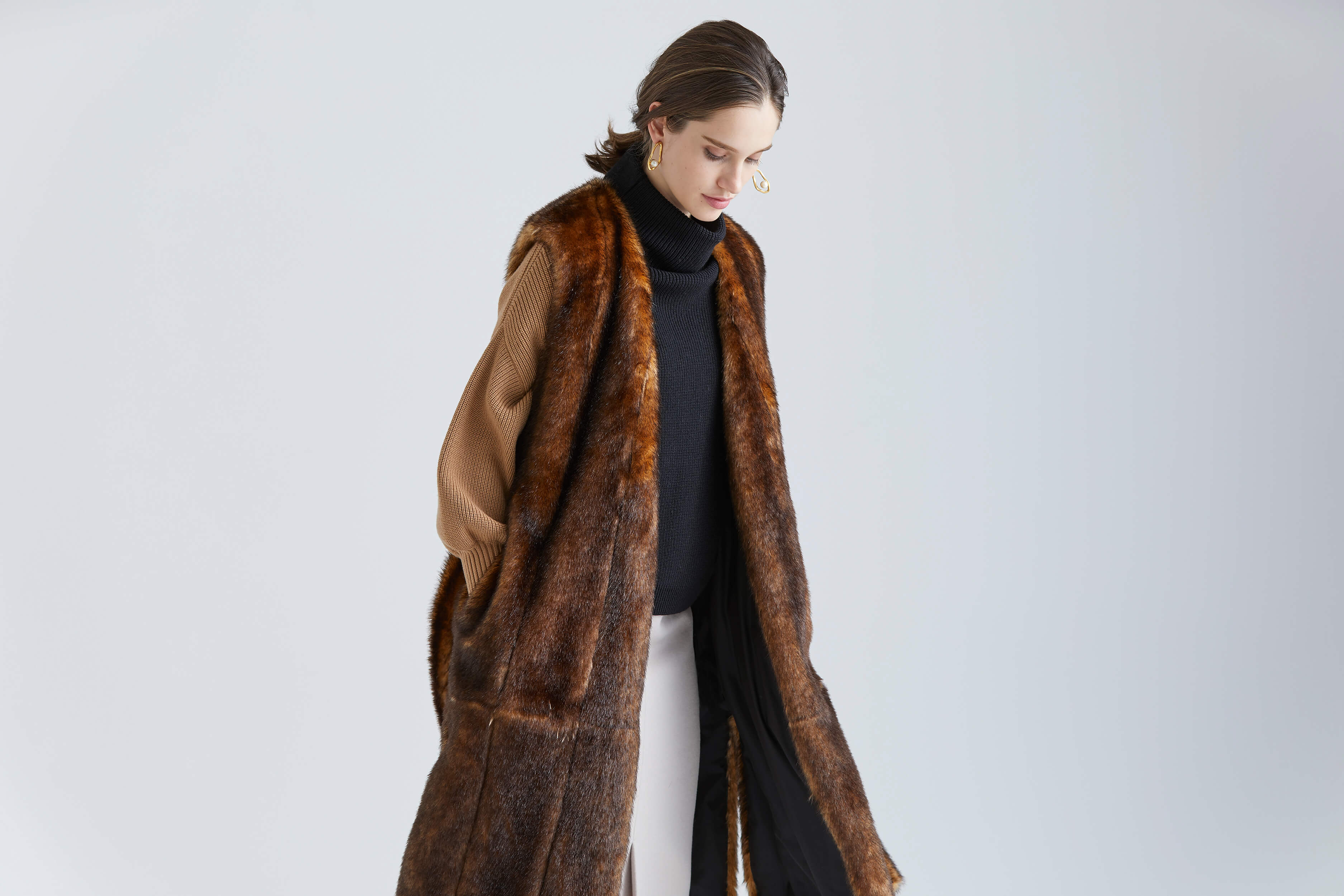 趣味で始めたアクセサリー作りだったけど、インスタグラムに載せたら思わぬ反響を呼んで、今日は人生で初の展示会を開くことに。デザイナーとしての一歩を歩むため、コーデの主役にはインパクトのあるエコファーのロングジレをチョイス。シンプルな装いでもこれを羽織るだけでファッショニスタのような気分になれるから、洋服の持つ力って偉大だ。このベストのおかげか、注文がたくさんとれた幸せな日曜日。