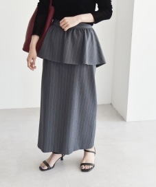 ¥6,930quaranciel:〈洗濯機可能〉ペプラム ベルト付 ストライプ Iライン スカート
