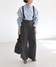 quaranciel:〈洗濯機可能〉チェック サスペンダー付 タック ワイド パンツ