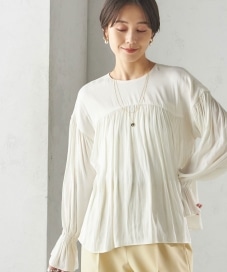 〈手洗い可能〉ヴィンテージ サテン ネック ギャザー ブラウス