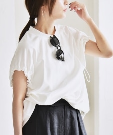 quaranciel:〈接触冷感/汗染み防止加工/洗濯機可能〉ドロスト ギャザー チュニック TEE