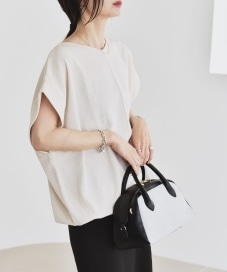 quaranciel:〈洗濯機可能〉REPREVE バンドカラー ギャザー パフ シャツ ブラウス