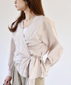 quaranciel:〈洗濯機可能〉ストライプ カシュクール シャツ ブラウス